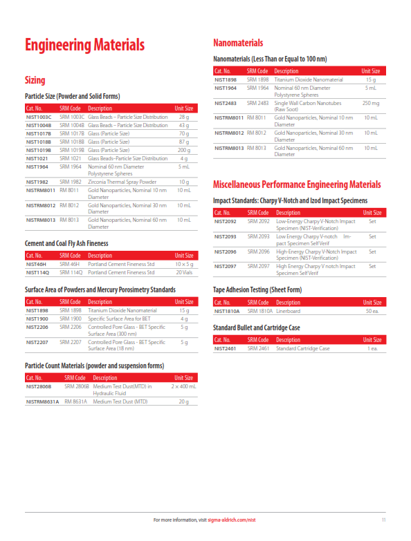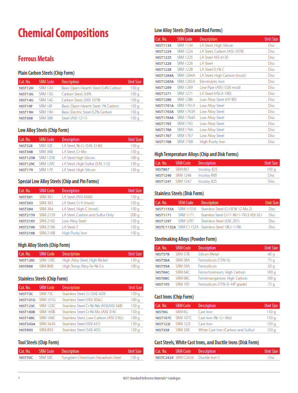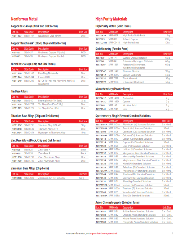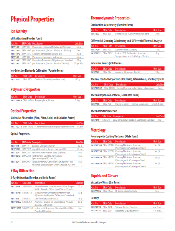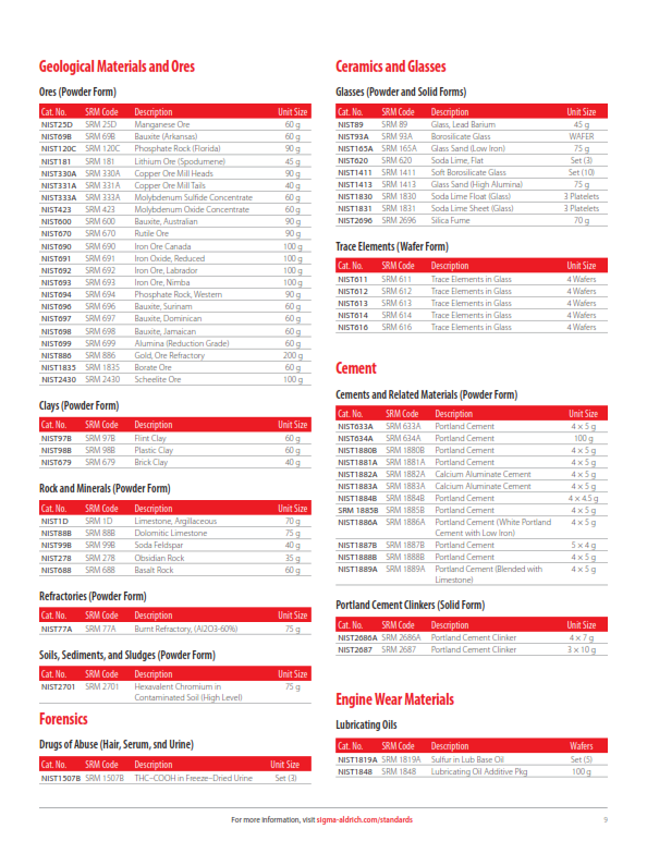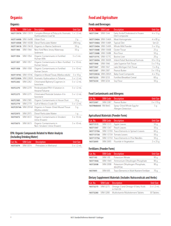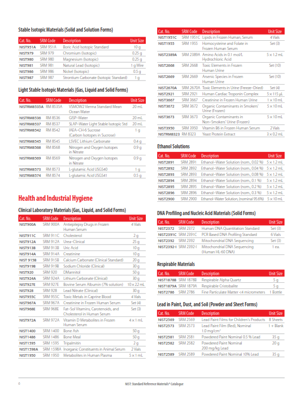 Standard Reference Materials (SRM) by National Institute of Standards and Technology (NIST)